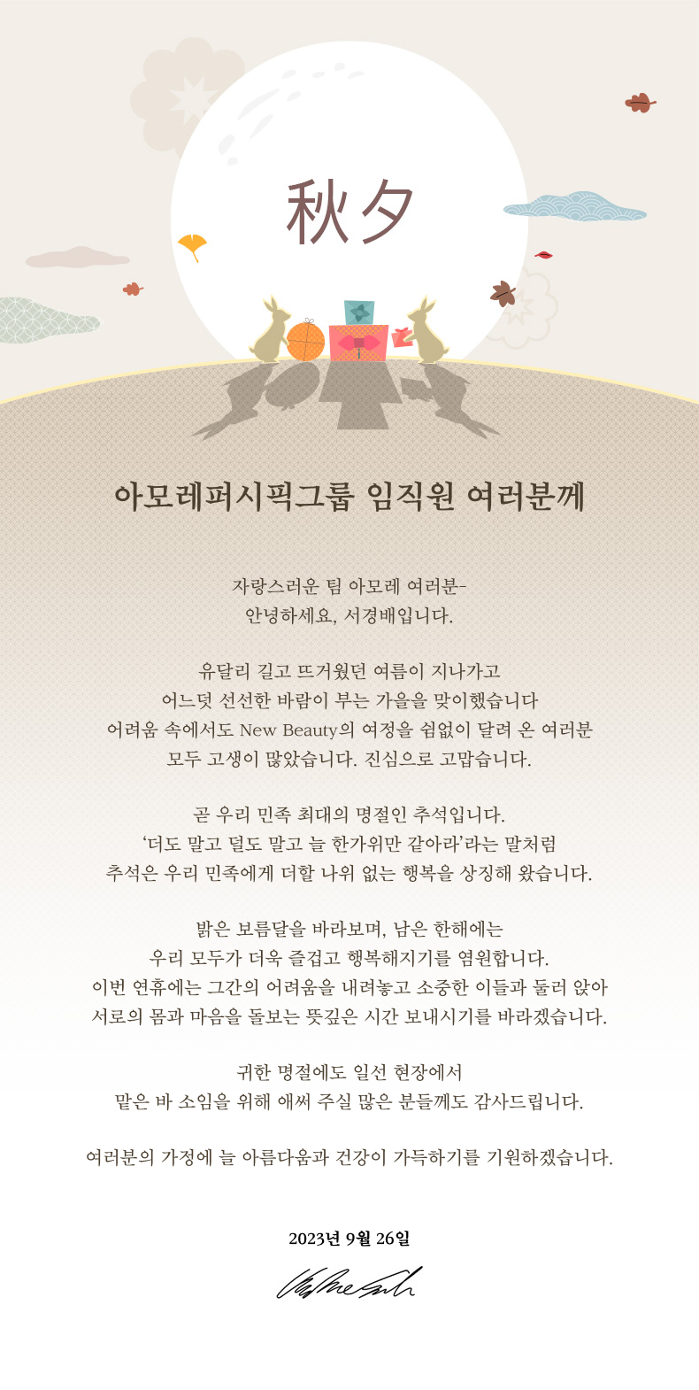 아모레퍼시픽그룹 임직원 여러분께