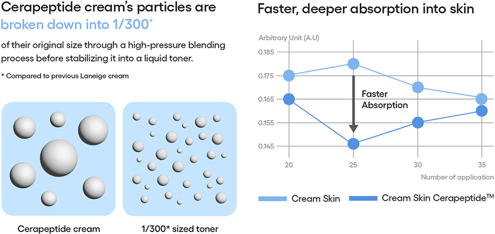 여기에 세라펩타이드를 더해 성분을 강화함으로써, 기존보다 훨씬 빠른 흡수를 가능하게 했다.