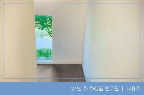 영화 <어쩔수가없다>에 아모레퍼시픽의 연구소 일부가 등장하는데요. 박찬욱 감독이 우리 회사 연구소 공간이 가진 독특함에 매력을 느꼈다는 이야기를 전해 들은 바 있습니다. 흔히 연구소라는 명칭은 다소 삭막한 느낌을 줍니다. 연구를 한다는 건 감성보다는 이성이, 부드러움보다는 딱딱함이 연상되니까요. 그렇지만 연구가 목적임에도 ‘공간’이라는 관점만 보면 미술관처럼 조형미가 가진 힘이 있기에, 스크린 속 배경이 될 수 있지 않았나 싶어요.