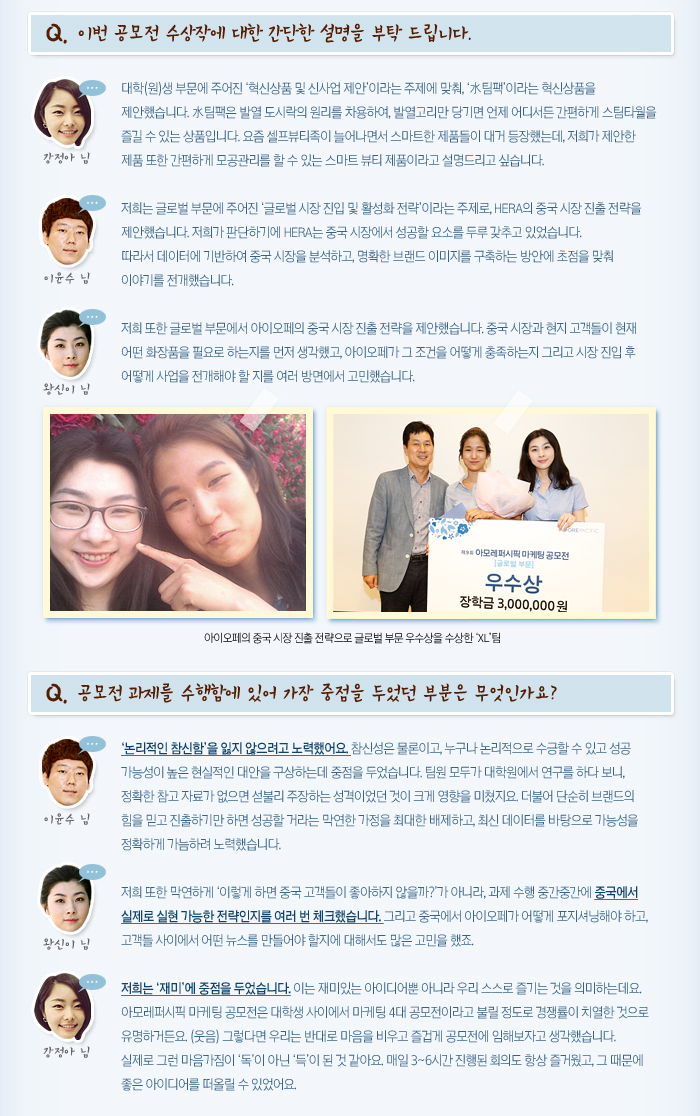 아모레퍼시픽 마케팅 공모전 수상자 인터뷰