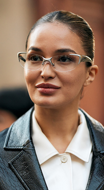 안경은 얼굴 위에 얹히는 액세서리인 만큼 전체 이미지에 미치는 영향이 크다. 동그란 안경테에 큐빅을 템플(안경 다리) 쪽에 더해 주얼리 안경으로 재해석하거나, 실버 톤의 티타늄 소재를 사각지대에 배치해 미학적 연출법으로 확장하는 등 시각적 실험도 인상적이었다.