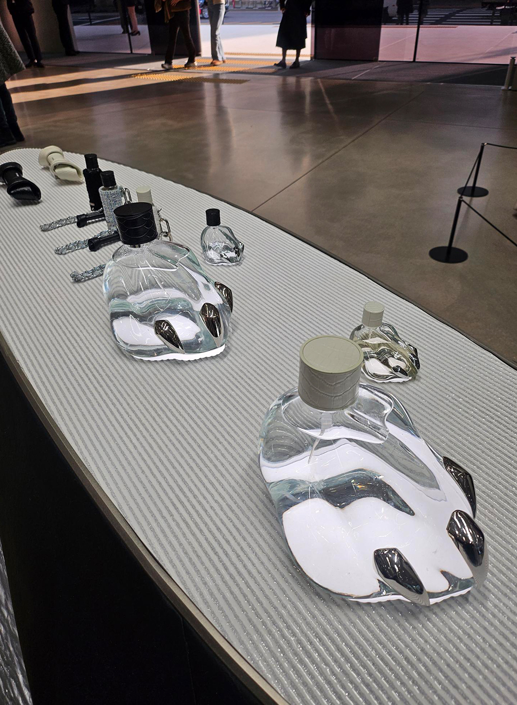 젠틀몬스터의 실험적 럭셔리 전략은 공간 디자인, 브랜드 캠페인, 비주얼 아트 전반에서 ‘고객 경험’을 중심에 두고 있다. 특히 20개 이상의 거울이 설치된 공간은 평소 셀카를 자주 찍지 않는 나조차 카메라를 들게 만들 만큼 강렬했다. 압도적인 스케일 때문만은 아니었다. 회색빛의 사이버틱한 공간에서 자연스럽게 손이 카메라로 향했던 것이다. 브랜드가 의도한 ‘고객의 자발적 바이럴’이 성공한 것이다.