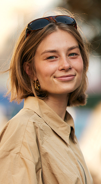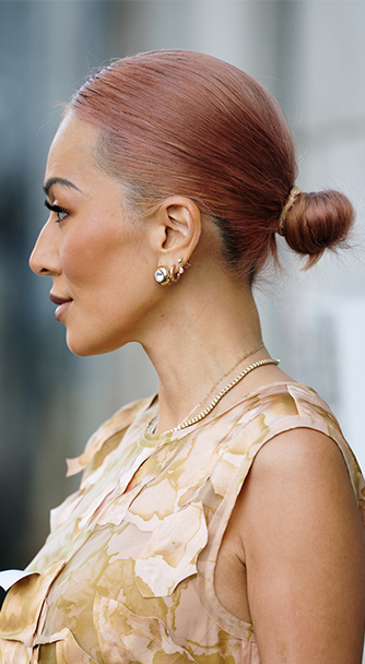 이번 스트릿 헤어 스타일링에서는 너무 완벽하게 다듬기보다 의도적으로 빗질 자국을 남겨준 로우번이 주로 선보였다. 로우번 스타일은 복잡한 디테일 없이 헤어의 실루엣만으로 전체 분위기를 간결하게 정리해 주기 때문에, S/S 시즌의 다양한 색감이나 액세서리와 함께 연출하기 좋다. S/S 26 패션위크에서도 옷의 조형적 라인과 굵기가 다른 타탄 체크(선의 굵기가 서로 다른 바둑판 무늬) 패턴이 많이 등장하면서, 얼굴과 넥 라인을 시원하게 드러내는 로우번 스타일이 함께 믹스앤매치되었다.