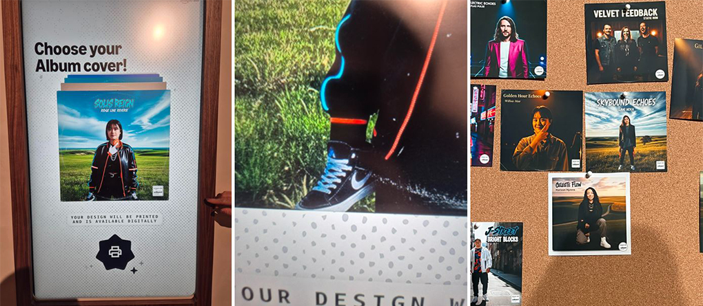 사진을 찍으면 AI가 앨범 커버처럼 만들어주는 기계도 있었습니다. 사진을 찍고, 원하는 음악 장르, 앨범 커버 분위기 등을 선택하면 아주 감쪽같게 실제 앨범 커버처럼 만들어주었습니다. 너무 감쪽같은 나머지, 손에 운동화를 껴버린 나. 같이 참석한 희영 님, 정빈 님 모두 멋진 힙합 가수로 데뷔하였습니다.