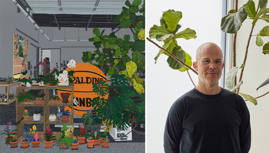 (좌) Jonas Wood, , 2021, Oil and acrylic on canvas, 279.4 x 264.2 cm Artwork © Jonas Wood. Photo: Marten Elder. / (우) Jonas Wood. Photo: Laure Joliet