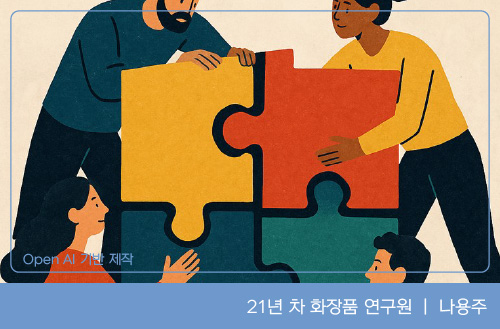 고객은 ‘왜’ 얼굴이 밝아지길 바랄까, 근본적인 질문을 던지고 답을 고민하다 보면 연구의 접근 방식이 달라집니다. 그저 피부를 밝게 만드는 바이오 타겟 하나를 찾아내는 것이 능사가 아닌 것이죠. 고객들이 가진 고충의 진짜 모습을 발견하는 단계가 먼저 필요합니다. 또한 회사의 사업이 어디서 기회를 찾는지도 함께 들여다봐야 하고요. 그런 과정들을 거쳐 연구의 방향을 정하다 보면 때로는 바이오 타겟이 아니라 전혀 다른 솔루션을 낼 수 있습니다. 나는 그저 연구하는 사람이니까 하고 싶은 거 하는 거라고 단정 짓거나, 이미 정해진 방향을 고수하다 보면 다른 생각을 떠올리기 쉽지 않습니다.