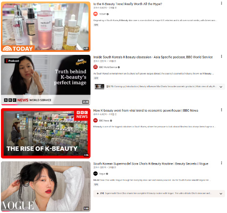 <유튜브에 나온 K뷰티 글로벌 콘텐츠들>