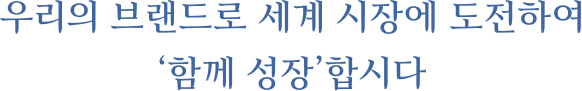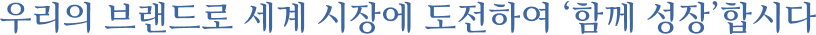 우리의 브랜드로 세계 시장에 도전하여 ‘함께 성장’합시다