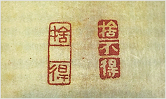 책을 펼치면 '기꺼이 내려놓는 것(舍得)'과 '놓기 아쉬운 것(舍不得)'이라는 단어가 도장으로 찍혀 있는 것을 볼 수 있습니다. 이 도장은 장쉰이 대학에서 강의할 때 한 학생이 직접 새겨 준 것입니다. '기꺼이 놓는 것'이라는 글자는 양각 형식으로 위로 올라와 있고 '놓기 아쉬운 것'이라는 글자는 음각 형식으로 아래로 패여 있습니다. 또한, 두 개의 도장은 각각 주문(朱文)과 백문(白文)을 사용했습니다.