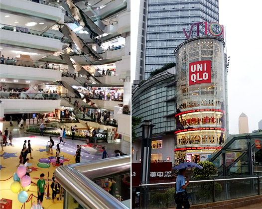 현재 제가 광저우에서 살고 있는 곳인 텐허루 지역에서는 텐허청(天河城)과 정지아 광장(正佳壙場)이 대표적인 상권입니다. 이중 텐허청은 우리나라 백화점보다도 훨씬 큰 규모를 자랑하는데요. 이곳 규모를 잠시 설명해 드리자면 유니클로 매장 하나가 국내 쇼핑몰 하나 정도의 규모입니다.