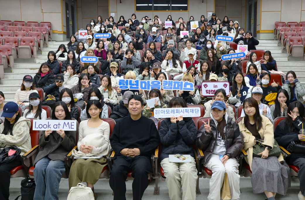 지난 11월 12일(수) 아모레퍼시픽재단은 덕성여자대학교와 함께 ‘청년 마음 캠퍼스’를 진행했습니다. 단풍이 아름답게 물든 캠퍼스에서 총 382명의 학생들과 진로, 취향, 마음 건강에 대해 이야기를 나누며 뜻깊은