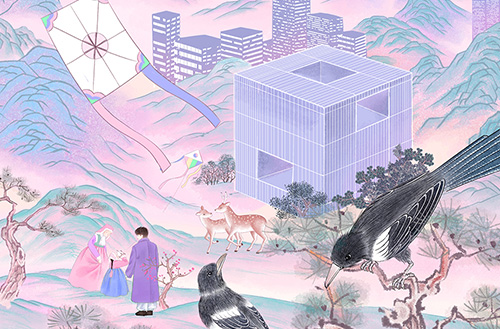 Lunar New Year is a day when individual lives converge in one place. For this celebration, AMOREPACIFIC STORIES worked with digital Korean painting artist Hyekang to capture a landscape where different scenes overlap in a single image. The scene flows from past to present, with people spending their day in their own ways. The lines and colors that move across the canvas quietly illuminate the warmth and connection that persist through the passage of time. Through this month’s main image, we invite you to slowly experience the Lunar New Year landscape as seen through Hyekang’s eyes, and the relationships and emotions contained within.