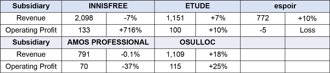 ■ Other Major Subsidiaries: INNISFREE, ETUDE, espoir, AMOS PROFESSIONAL, OSULLOC