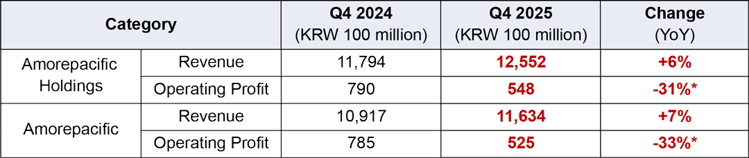 Amorepacific Group posted consolidated revenue of KRW 4.6232 trillion and operating profit of KRW 368 billion for the year 2025, marking its highest operating profit in six years since 2019. Improved performance was driven by strengthened competitiveness across the group's global premium skincare brands, strong performance in derma, makeup and hair care categories, and continued expansion in major overseas markets. As execution of the mid- to long-term corporate vision, 'Create New Beauty,' gained momentum, Amorepacific Group further reinforced its foundation to advance as a global leader in beauty and wellness.