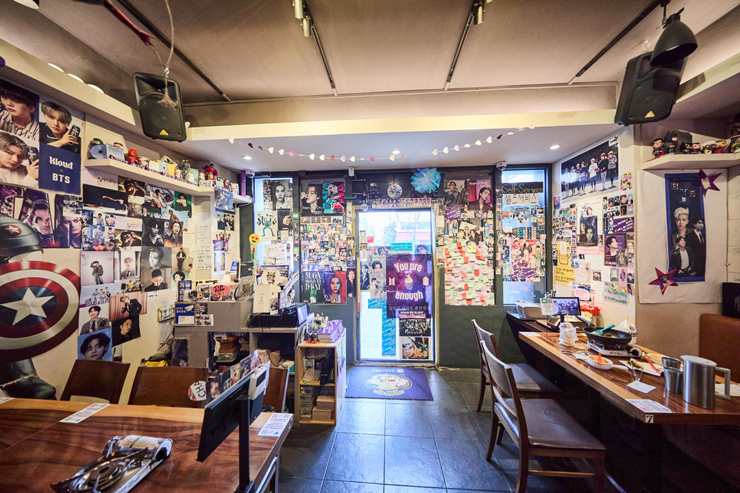 Yujung Choi This was a joint effort with our guests. We were really careful at first, worried that people might think we were trying to capitalize on BTS. But our customers told us not to worry and started bringing in their own posters and photos to put up themselves. ARMY fans would hold parties here and leave behind some truly precious photos before heading out.